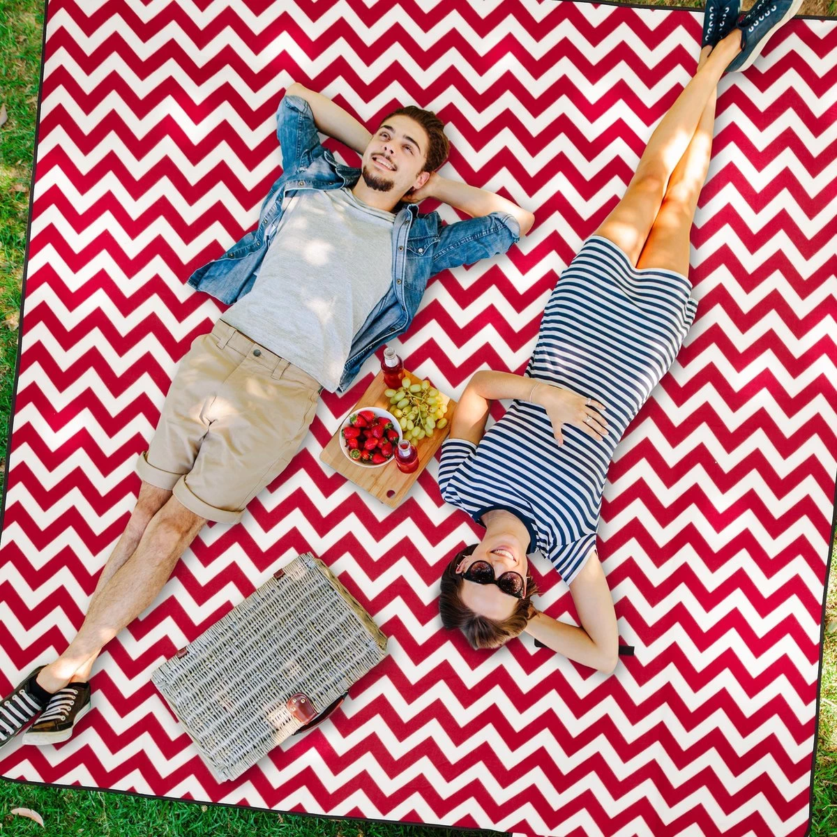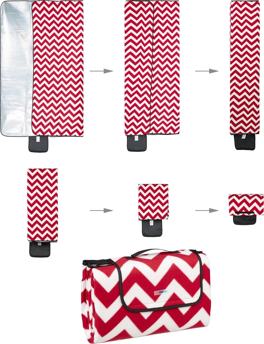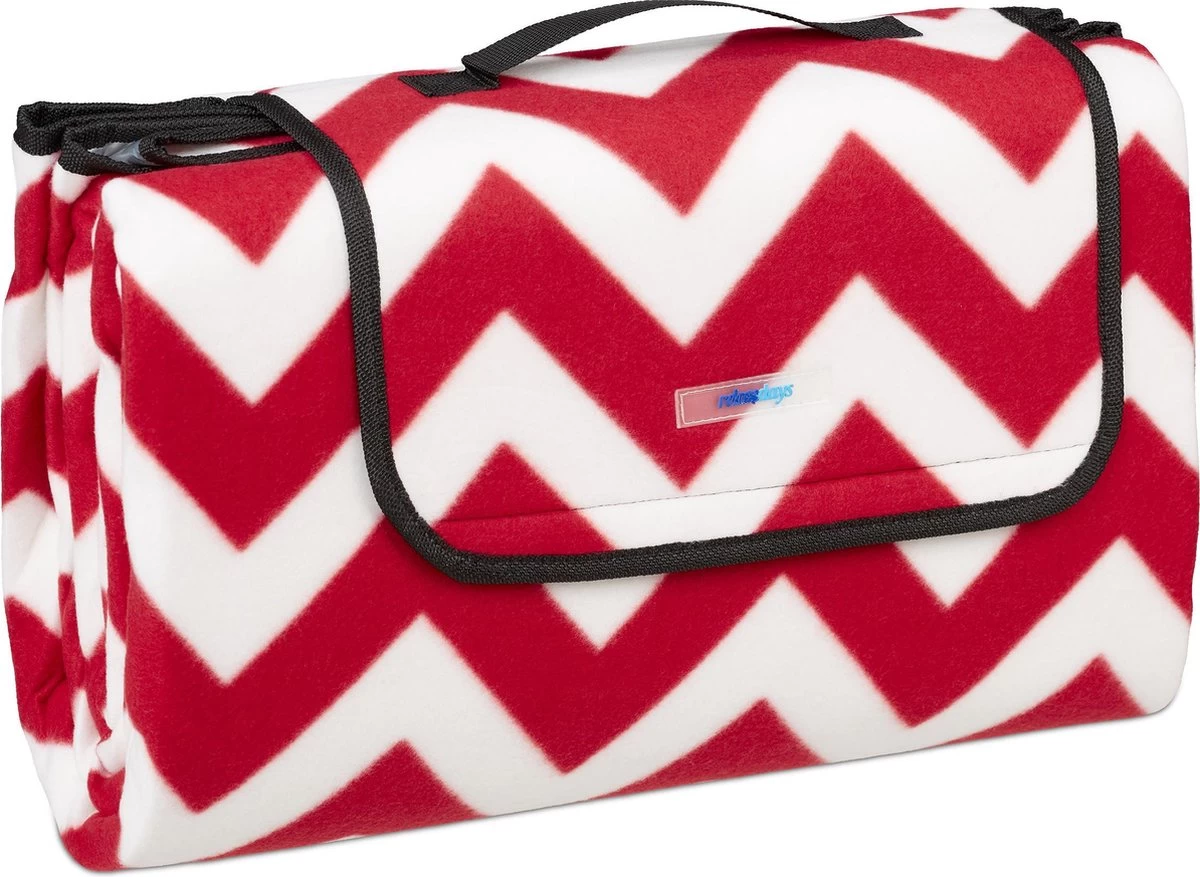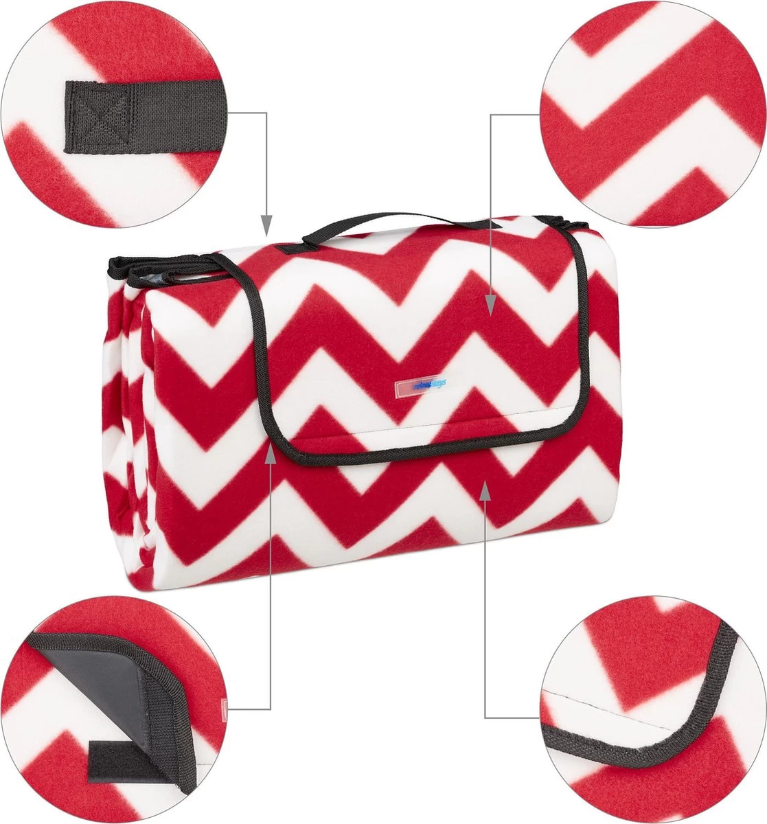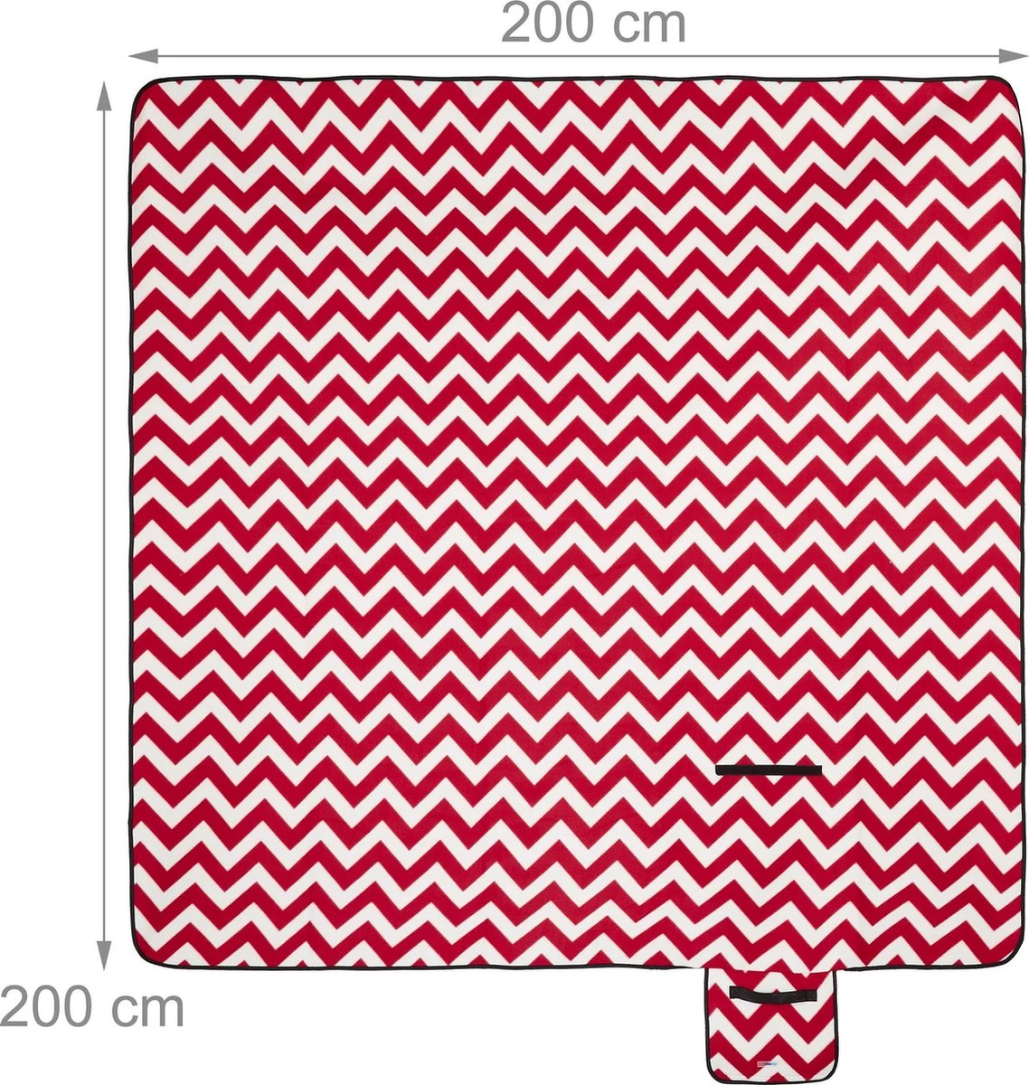 Relaxdays Couverture De Pique-nique Zigzag – Rouge-blanc – Serviette De Pique-nique – 200×200 – Serviette De Plage – Polaire