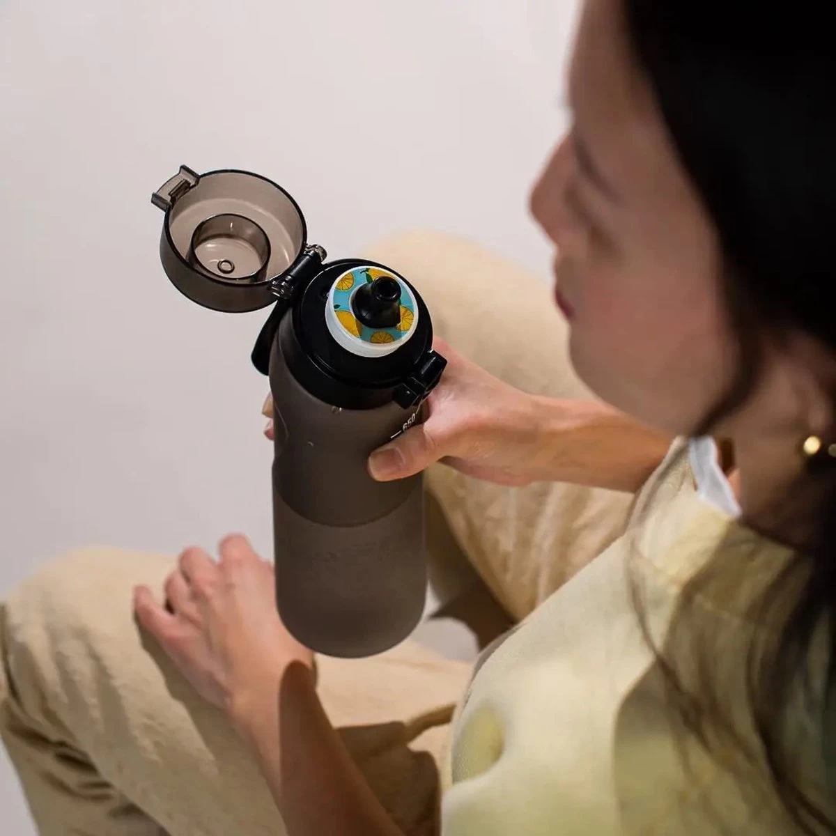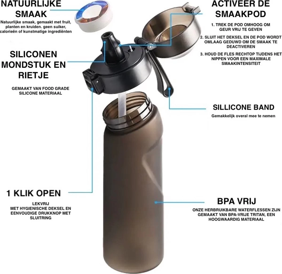 Avec le kit de démarrage Scent Sation®, vous obtenez une gourde de couleur anthracite de 650 ml et 7 dosettes délicieusement parfumées. Le matériau de notre système d’hydratation est de haute qualité et soigneusement choisi pour répondre à notre norme. Par exemple, notre biberon est en tritan sans BPA, sans plastifiants, et notre embout buccal est en silicone de marque alimentaire, comme les tétines. Nos dosettes sont fabriquées à partir de matériaux recyclables et contiennent une couche d’arôme naturel.