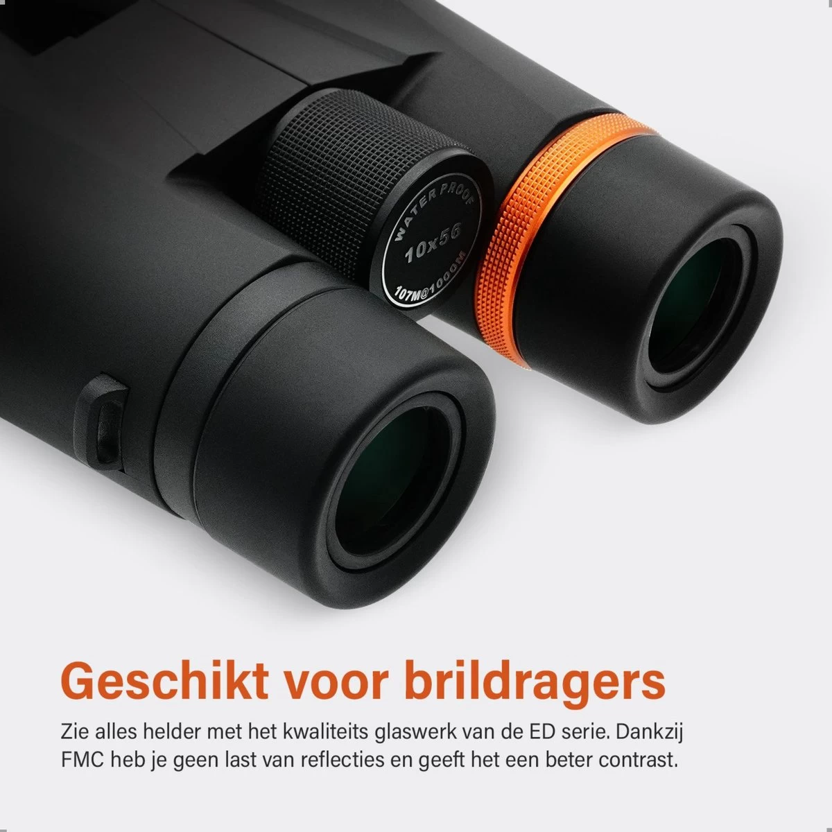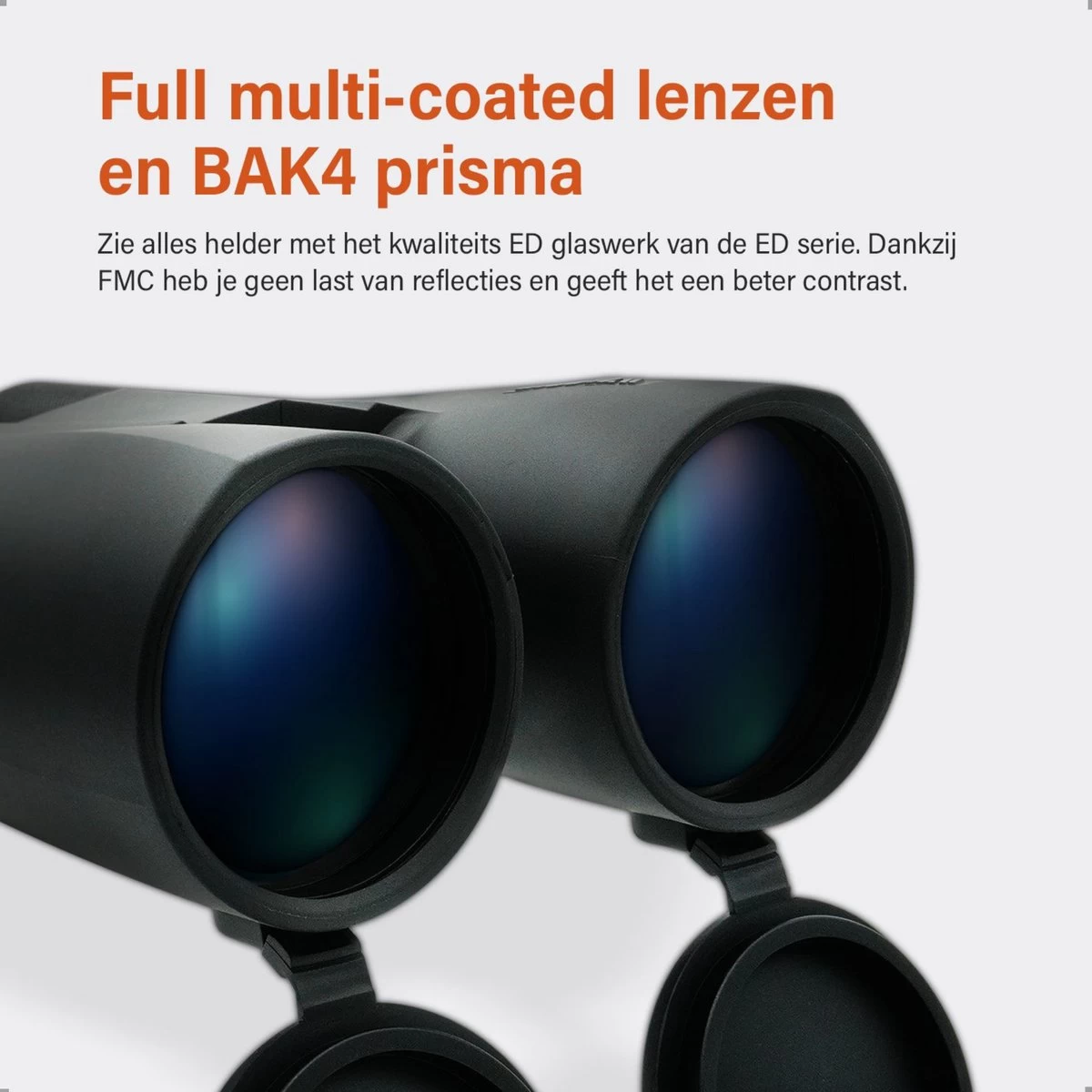 La série ED a un revêtement de phase et annule le soi-disant décalage de longueur d’onde qui se produit avec un prisme en toit, permettant à plus de lumière et de luminosité de passer à travers et assurant ainsi une meilleure qualité optique. De plus, le prisme BAK4 de la série ED possède un film HRD (film diélectrique hautement réfléchissant), qui peut influencer la longueur d’onde de la lumière et fournir une image plus nette et plus claire.