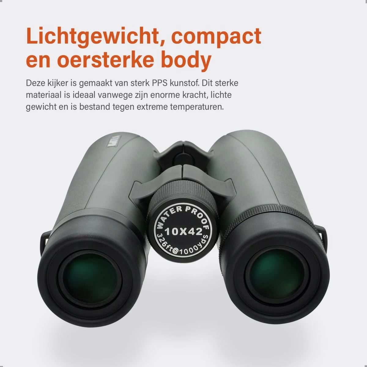 Ces jumelles compactes ne pèsent que 667 grammes, ce qui est sans précédent pour des jumelles de cette qualité robuste. De plus, le boîtier PPS garantit que le spectateur peut prendre une raclée. Ce plastique solide et léger peut supporter pas moins de 200 degrés et est donc insensible aux fluctuations de température et protège la verrerie de manière optimale.