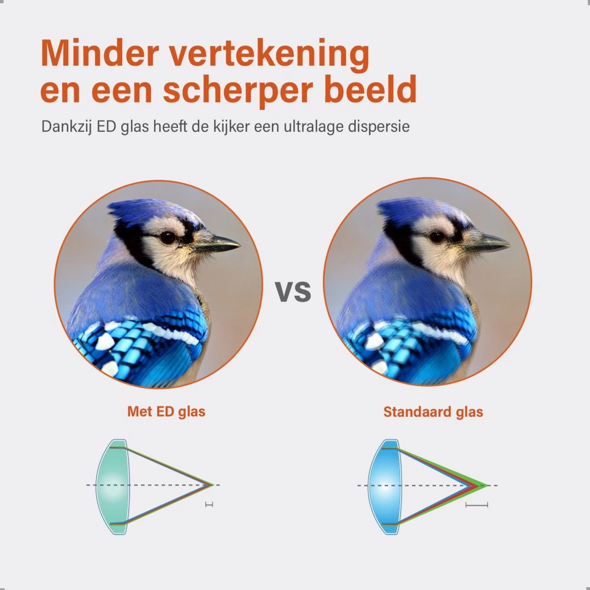 Voyez tout d’une netteté jusqu’à 300 mètres grâce aux lentilles ED multicouches complètes de cette visionneuse. Le verre ED assure une meilleure transition lumineuse et donc une image plus claire avec plus de lumière. De plus, le prisme BAK-4 a moins de distorsion et une image plus grande que BK7. Grâce à ces fonctionnalités puissantes, cette visionneuse d’une netteté remarquable peut être utilisée dans n’importe quelle situation.