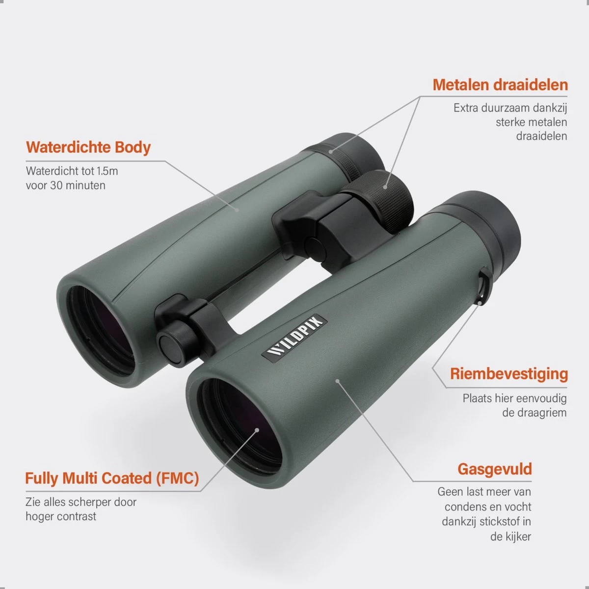 La série Wildpix ED est remplie d’azote, ce qui empêche la condensation et garantit au spectateur des performances optimales dans toutes les situations. La combinaison de joints d’azote et de caoutchouc rend les jumelles étanches jusqu’à 30 minutes.