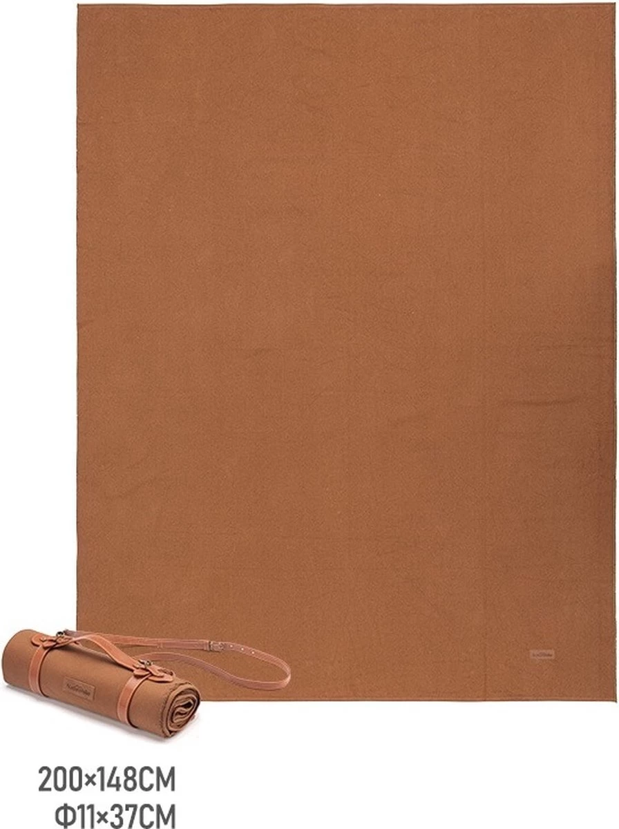 Une couverture de pique-nique marron de 2 mètres sur 1,5 mètre qui peut être enroulée et rangée dans un sac de transport.