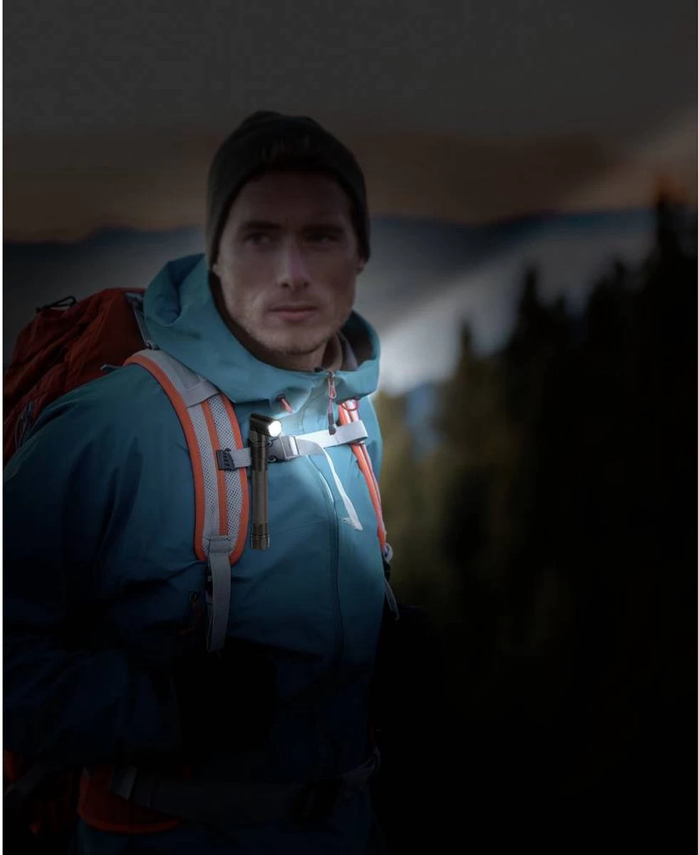 - 1x manuel d’utilisation, 1x lampe LED avec batterie, 1x clip de fixation amovible, 1x câble de charge USB-C