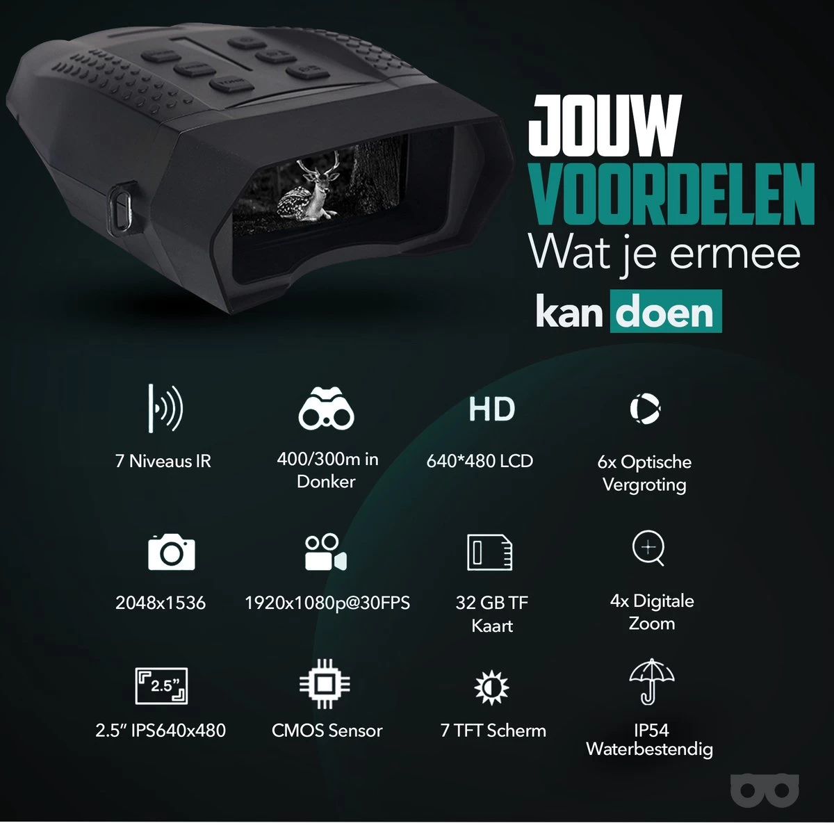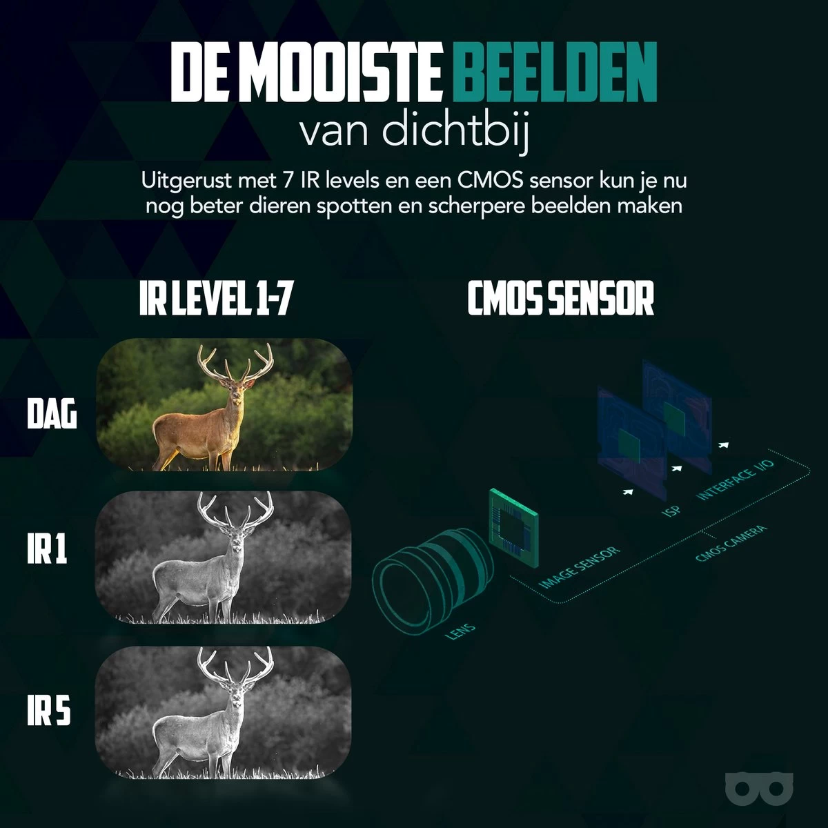 Tous les animaux n’aiment pas être sous les « projecteurs », certains animaux sont tout simplement timides et n’apparaissent que lorsqu’il fait nuit noire et que nous ne pouvons presque rien voir de nos eigen yeux. Équipé de 7 niveaux de luminosité IR et d’un zoom numérique 4x, vous n’avez plus à vous en soucier. Avec ces lunettes de vision nocturne, vous pouvez mieux repérer les animaux et faire des images encore plus nettes sans avoir à les effrayer. Mettez les lunettes de vision nocturne dans la bonne position et prenez les plus belles photos et vidéos pour une expérience encore meilleure.